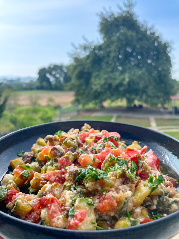 Stir fry ikarian cu dovlecei, rosii si feta